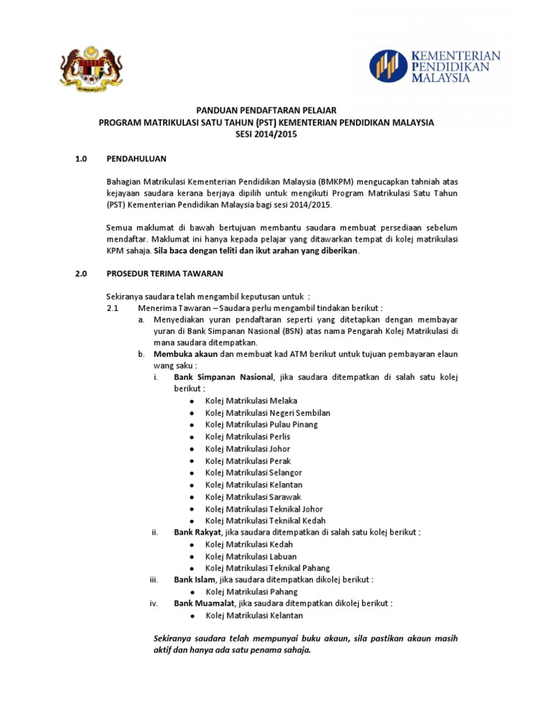 Panduan Pendaftaran Program Satu Tahun Matrikulasi 2009 By Rizal Nawi Issuu